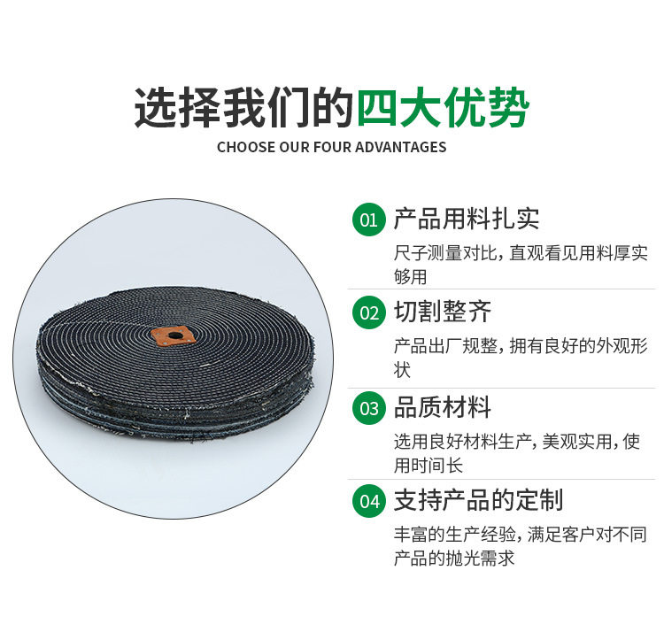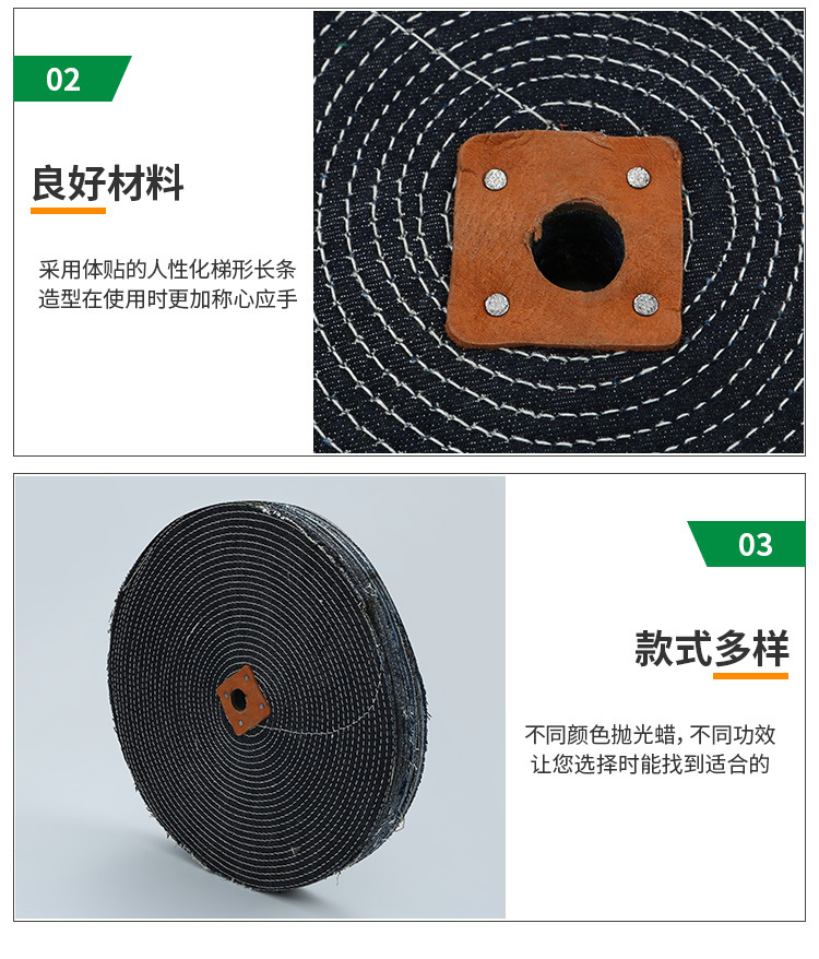 煙具潔具拋光輪 純棉布輪拋光輪縫合式整布輪。多用細(xì)軟棉布制成,宜拋光形狀復(fù)雜工件,或用于小型工件的精拋光。縫合式。多用粗布、無紡布及細(xì)平布等制成,縫線可采用同心圓式螺旋式及直輻射形式,宜拋光各種鍍層及形狀較簡單的工作。