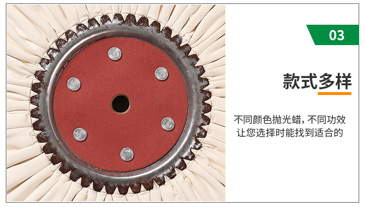 黃蠟:其內(nèi)含豐富有的油脂,因選材講究,更具有超卓的光澤度及切削力,具有相當不錯拋光效果,拋后紋路光滑細膩。不會燒傷工件,一般配合粗布輪粗拋使用,價格比較實惠。
