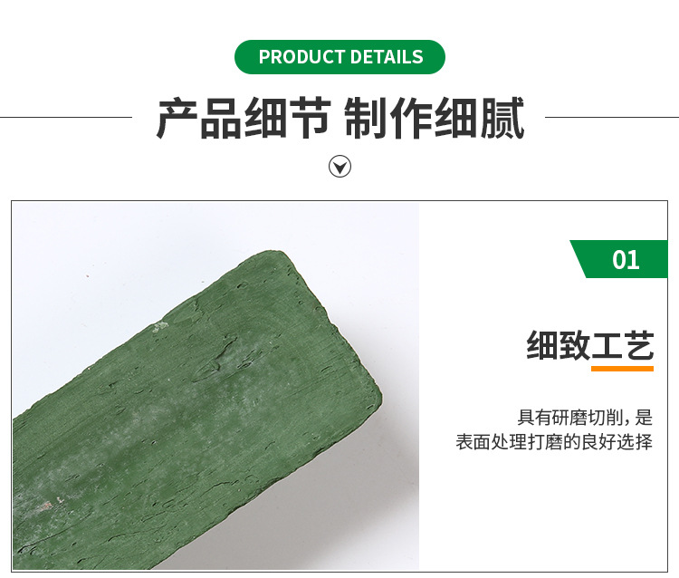 鏡面拋光蠟采用高強(qiáng)全樹脂砂布為原材料,使用高強(qiáng)粘度樹脂膠,產(chǎn)品質(zhì)量穩(wěn)定,外觀美觀。適用行業(yè)非常廣泛,可用于各類金屬、非金屬產(chǎn)品表面研磨、拋光,采用體貼的人性化梯形長條造型在使用時更加稱心應(yīng)手,是表面處理打磨的良好選擇