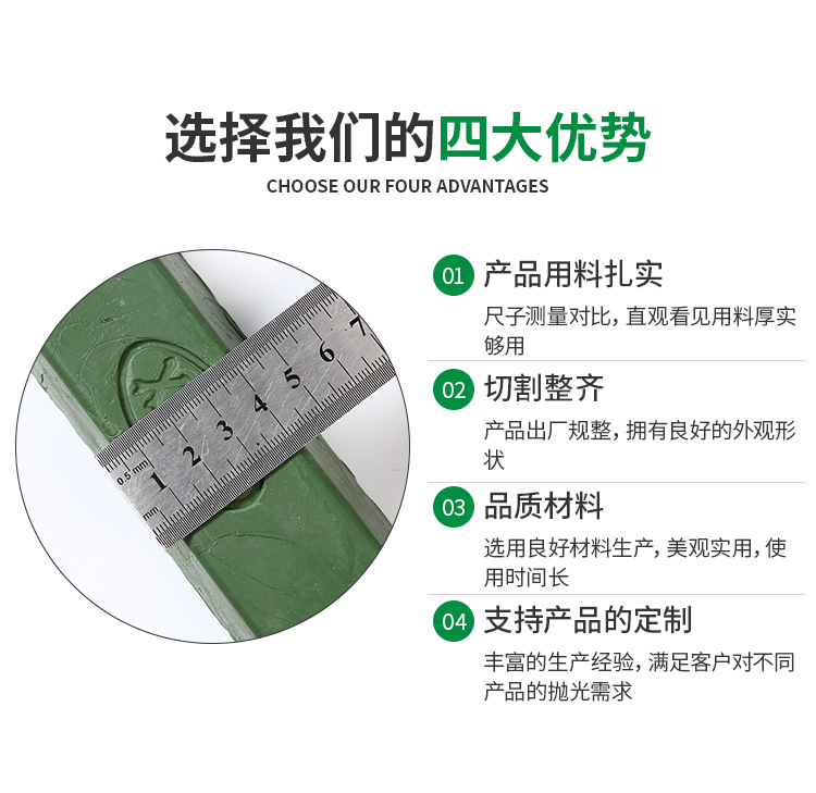 | 青臘 A-8 | 深綠 | 20 | 本產(chǎn)品與布輪配合使用,適合任何材質(zhì),有著出光快,可以達(dá)到鏡面效果,是華銘目前好的一款產(chǎn)品... |