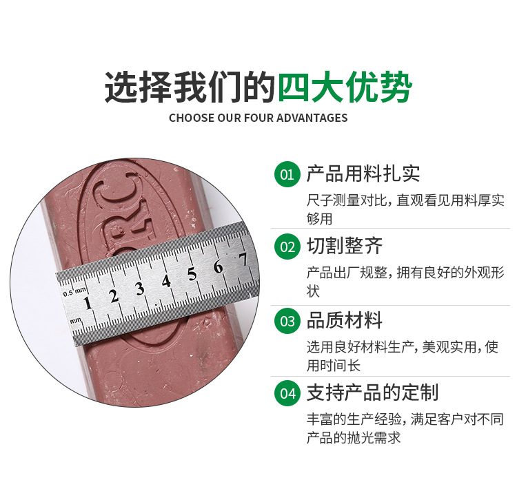 不銹鋼衛浴拋光臘采用高強全樹脂砂布為原材料,采用體貼的人性化梯形長條造型在使用時更加稱心應手,使用高強粘度樹脂膠,產品質量穩定,外觀美觀。適用行業非常廣泛,可用于各類不銹鋼衛浴表面研磨、拋光,是衛浴表面處理打磨的良好選擇。