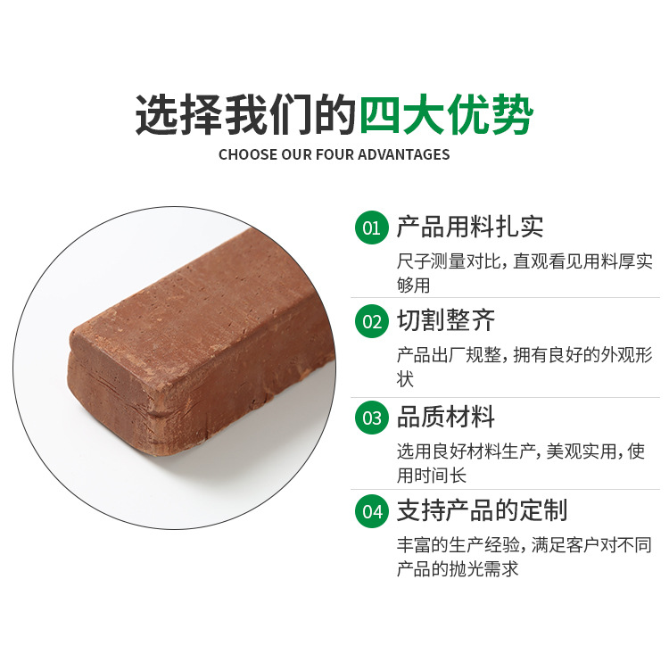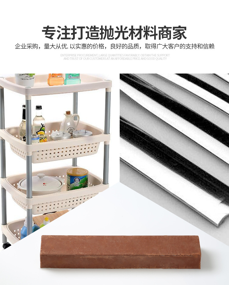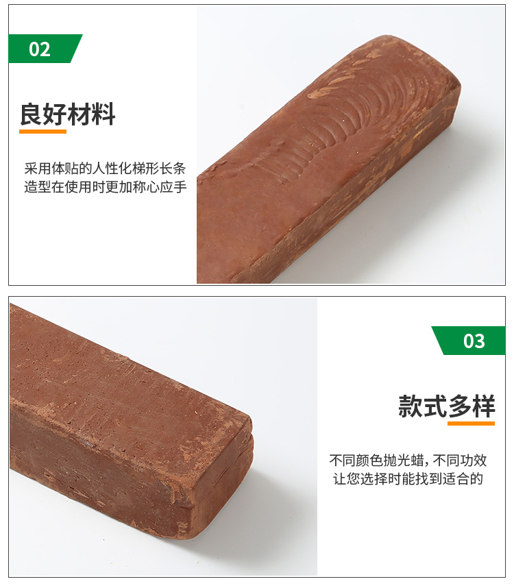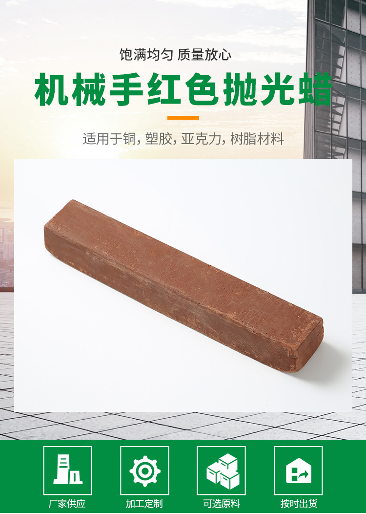 華銘機(jī)械手紅色拋光蠟(臘)與布輪配合使用,適合任何材質(zhì),有著出光快,可以達(dá)到鏡面效果,是華銘目前較好的一款產(chǎn)品。采用體貼的人性化梯形長(zhǎng)條造型在使用時(shí)更加稱(chēng)心應(yīng)手,款式多樣不同顏色拋光蠟,不同功效讓您選擇時(shí)能找到適合的